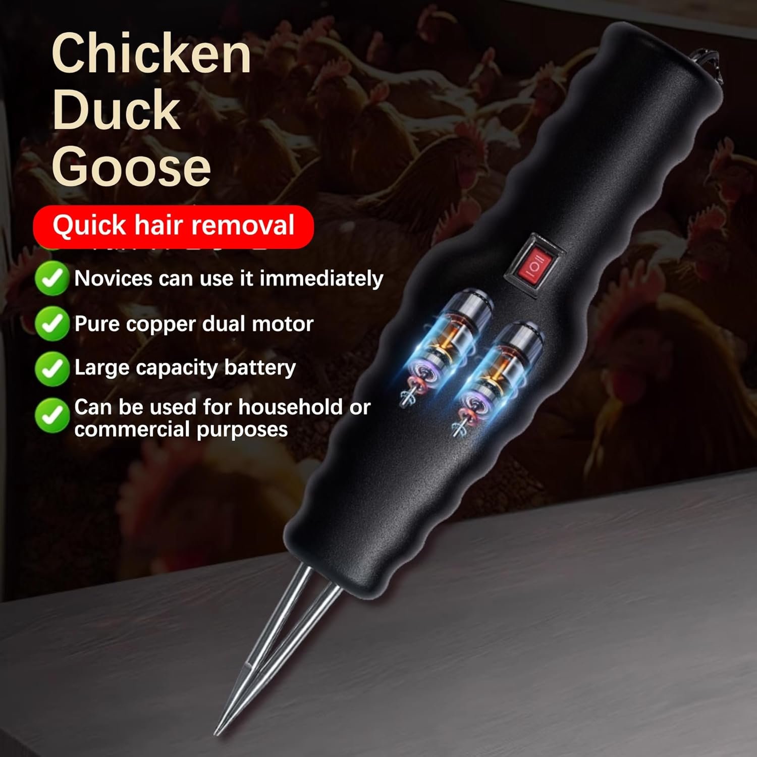 🔹 শক্তিশালী ইলেকট্রিক মোটর – শক্ত ও ঘন পালক দ্রুত ও পরিষ্কারভাবে তুলে ফেলে